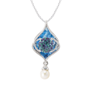 14K White Gold Blue Topaz, Ruby, Emerald, and Pearl Necklace