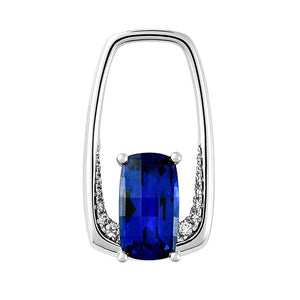 14K White Gold Lab Created Blue Sapphire and Diamond Pendant