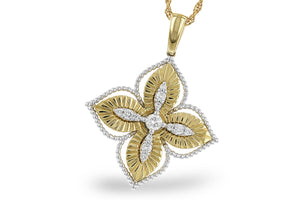 14K Two-Tone Gold Flower Pendant with Diamond Accents