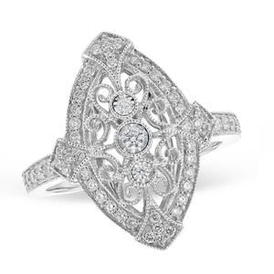 14K White Gold Art Deco Inspired Diamond Fashion Ring