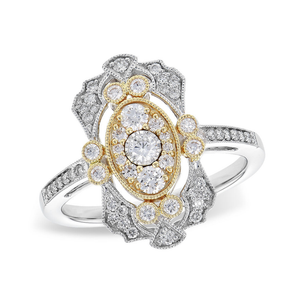 14K Two-Tone Gold Diamond Art Deco Fashion Ring