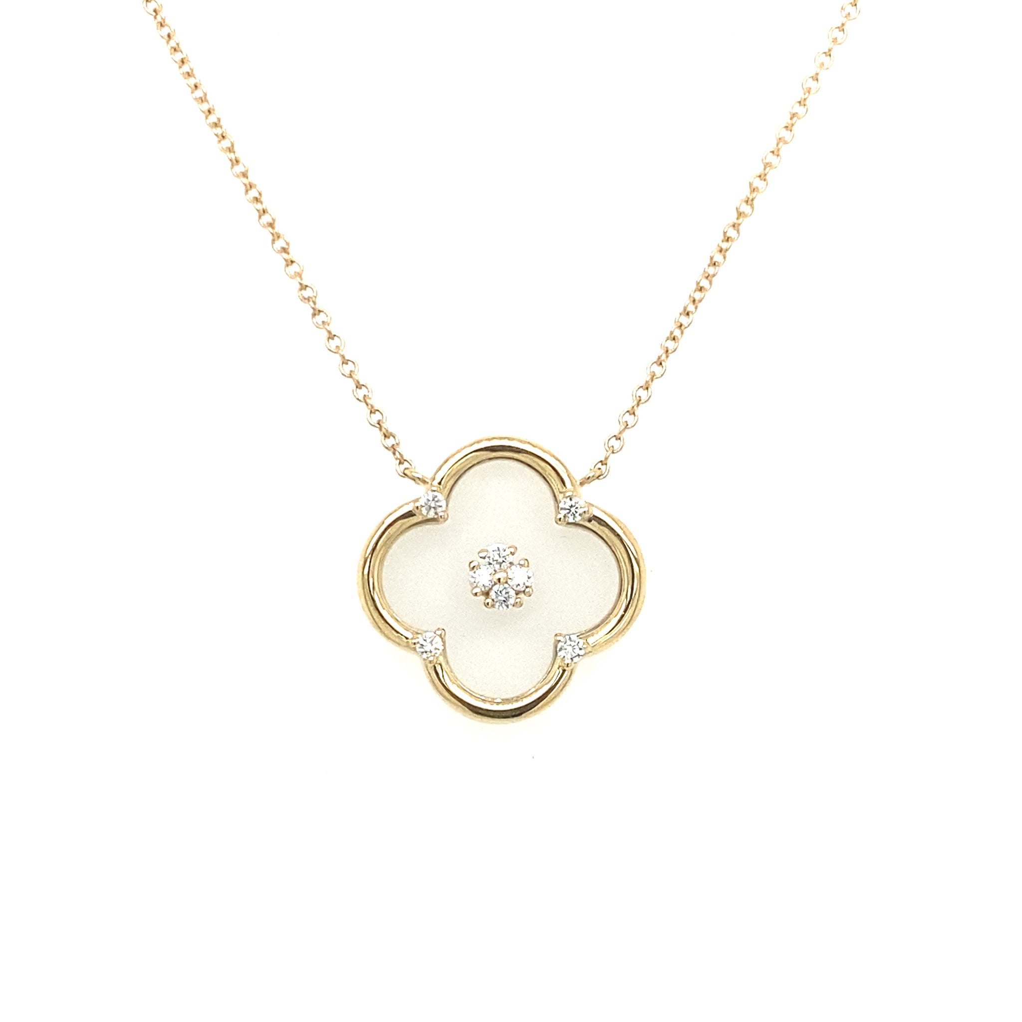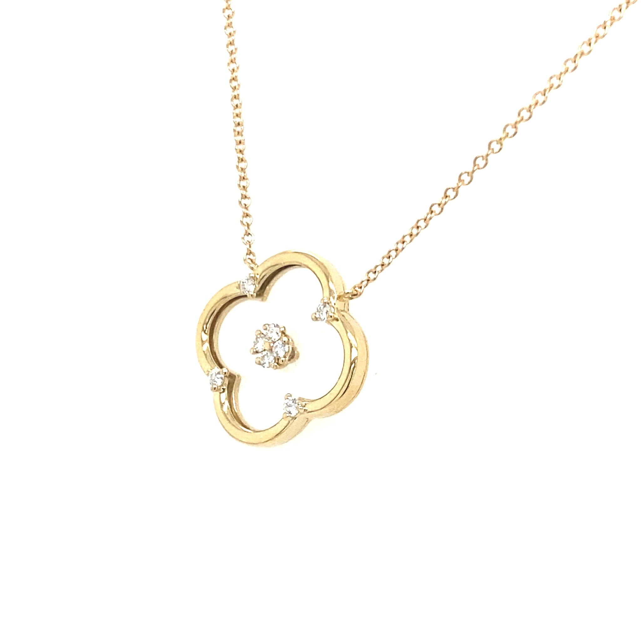 14K Yellow Gold Clover Shaped Floating 0.08cttw Diamond Necklace with