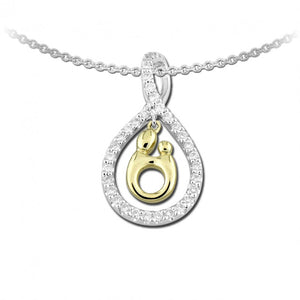 14K Two-Tone Gold Diamond Mother and Child Pendant