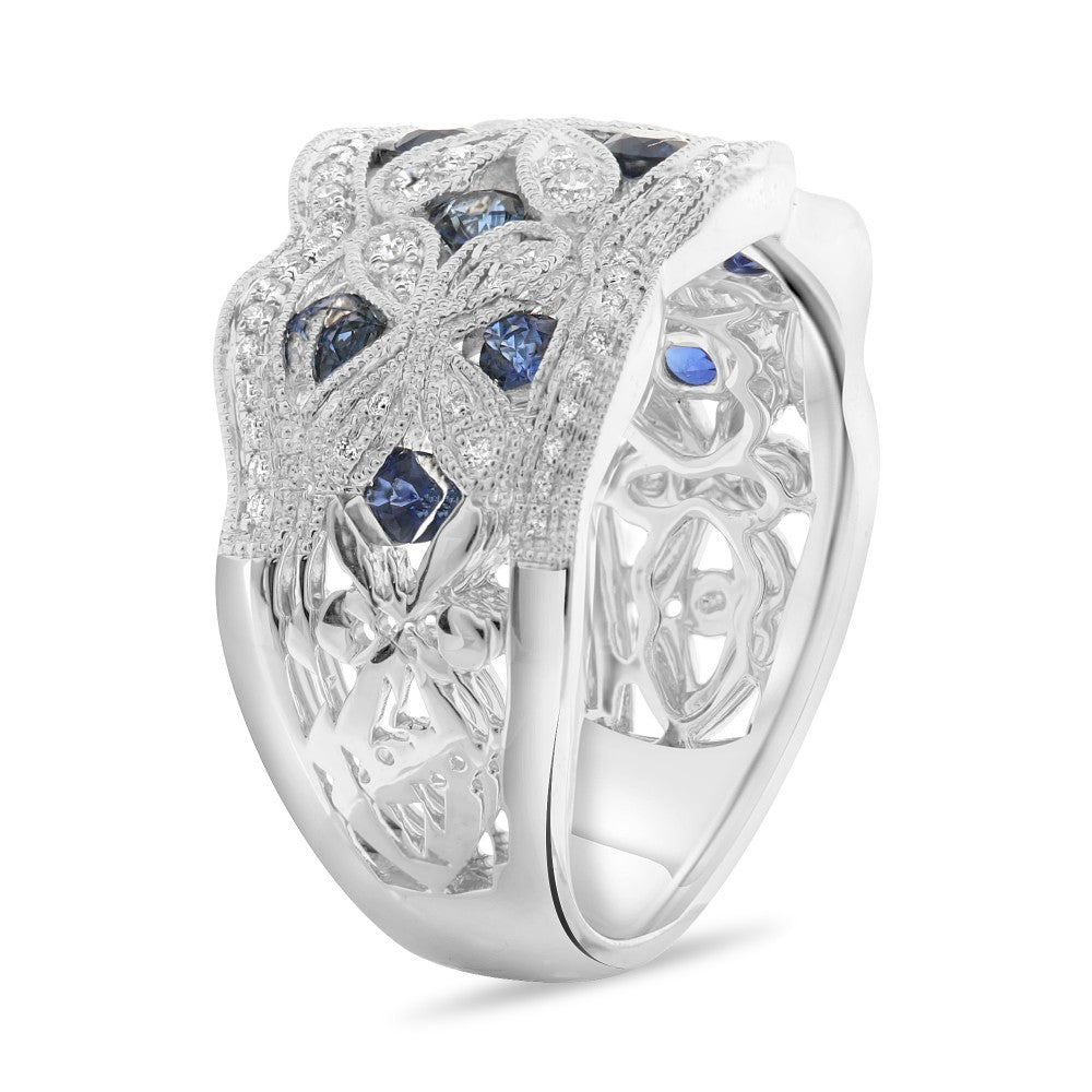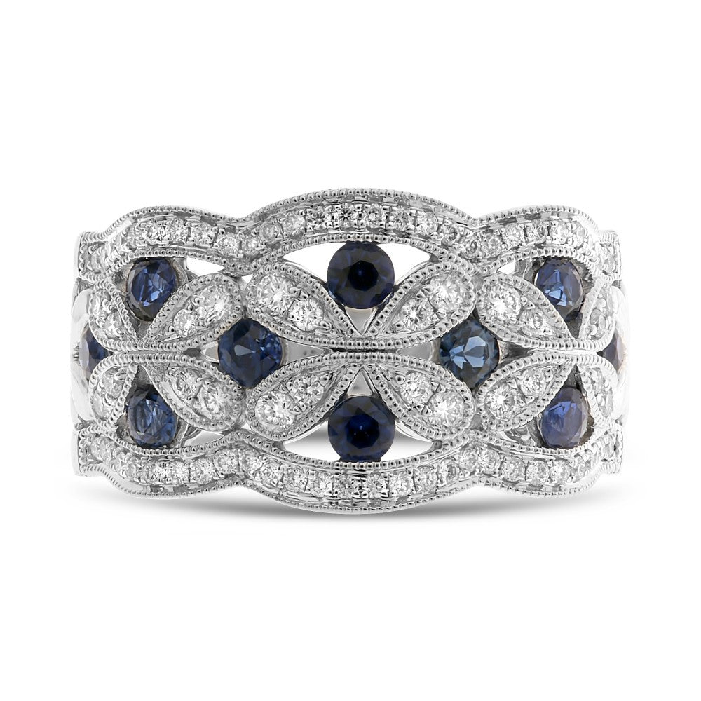 Lady's White Polished 14K Gold Band Size 6.25 With 10=0.67Tw Round Blue Sapphires And 80=0.41Tw Round Diamonds